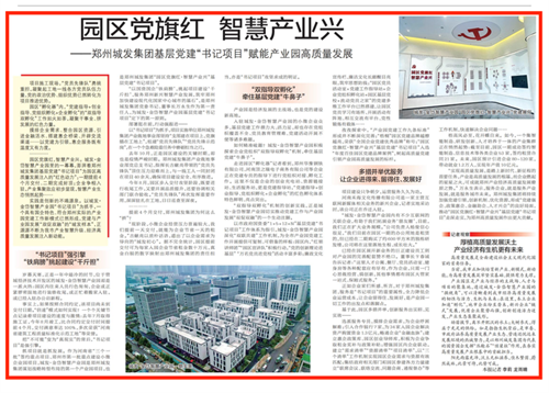 實踐是創(chuàng)新的不竭源泉。以城發(fā)·金岱智慧產(chǎn)業(yè)園“書記項目”為抓手,一個具有國企特色、符合鄭州實際的產(chǎn)業(yè)園黨建工作新模式已然形成,黨建與產(chǎn)業(yè)園發(fā)展“雙促雙融”的“城發(fā)樣本”,正源源不斷為我市產(chǎn)業(yè)智慧升級、經(jīng)濟高質(zhì)量發(fā)展注入新動能。
