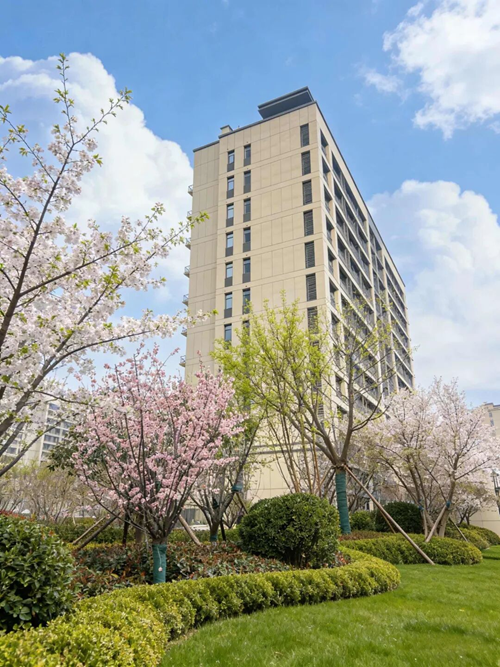 新樓向藍(lán)天而立,繁花開(kāi)在歸家路上。
