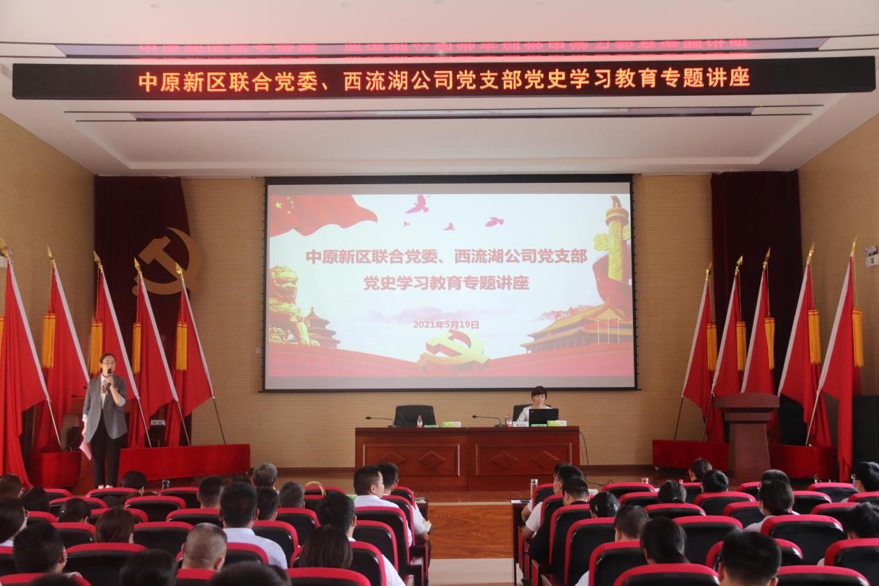 黨史是最好的教科書(shū)和營(yíng)養(yǎng)劑,在中國(guó)共產(chǎn)黨成立100周年之際,為扎實(shí)開(kāi)展好黨史學(xué)習(xí)教育,引導(dǎo)廣大黨員干部職工知史愛(ài)黨、知史愛(ài)國(guó),進(jìn)一步樹(shù)牢“四個(gè)意識(shí)”、堅(jiān)定“四個(gè)自信”、做到“兩個(gè)維護(hù),推動(dòng)黨史學(xué)習(xí)教育取得實(shí)效,5月19日下午,中原新區(qū)聯(lián)合黨委、西流湖公司黨支部邀請(qǐng)河南省委黨校黨史教研部副主任、副教授楚向紅老師開(kāi)展黨史學(xué)習(xí)教育專(zhuān)題講座。公司領(lǐng)導(dǎo)班子、西流湖公司、鄭地發(fā)展以及中原新區(qū)聯(lián)合黨委黨員職工代表共計(jì)150余人參加講座。