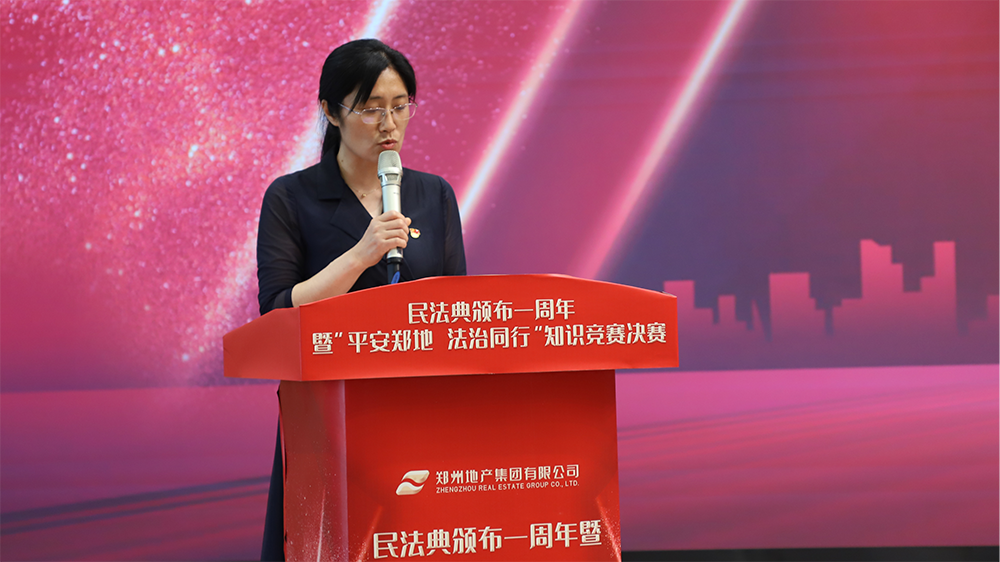 為深入貫徹落實習近平總書記關(guān)于民法典學習宣傳的重要講話精神及市國資委2021年度普法依法治理工作要點相關(guān)要求,引導全體職工深入學習民法典及相關(guān)法律知識,提升職工干部學法懂法守法用法的能力,5月28日,在民法典頒布一周年之際,鄭州地產(chǎn)集團主辦、西流湖公司和鄭地發(fā)展公司承辦的“平安鄭地 法治同行”知識競賽總決賽在金岱科創(chuàng)城商務(wù)服務(wù)中心舉辦,在市屬國企系統(tǒng)掀起學法普法的熱潮。鄭州市國資委黨委委員、副主任孟慶平、信訪處處長夏建新、法規(guī)處副處長張珂應(yīng)邀出席本次活動。